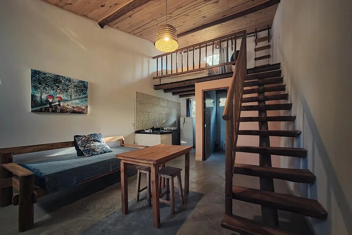 Charme, conforto e estrutura para sua jornada. Hospede-se em lofts privativos de 48m² com vista para a natureza ao redor, internet de alta velocidade, cadeira ergonômica e silêncio absoluto.