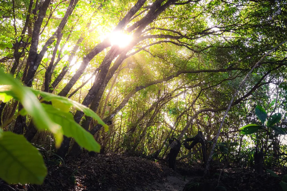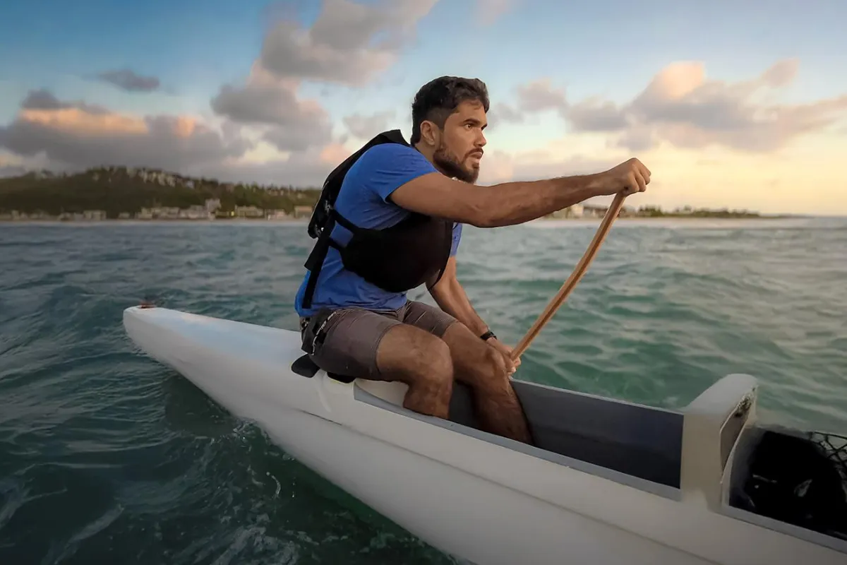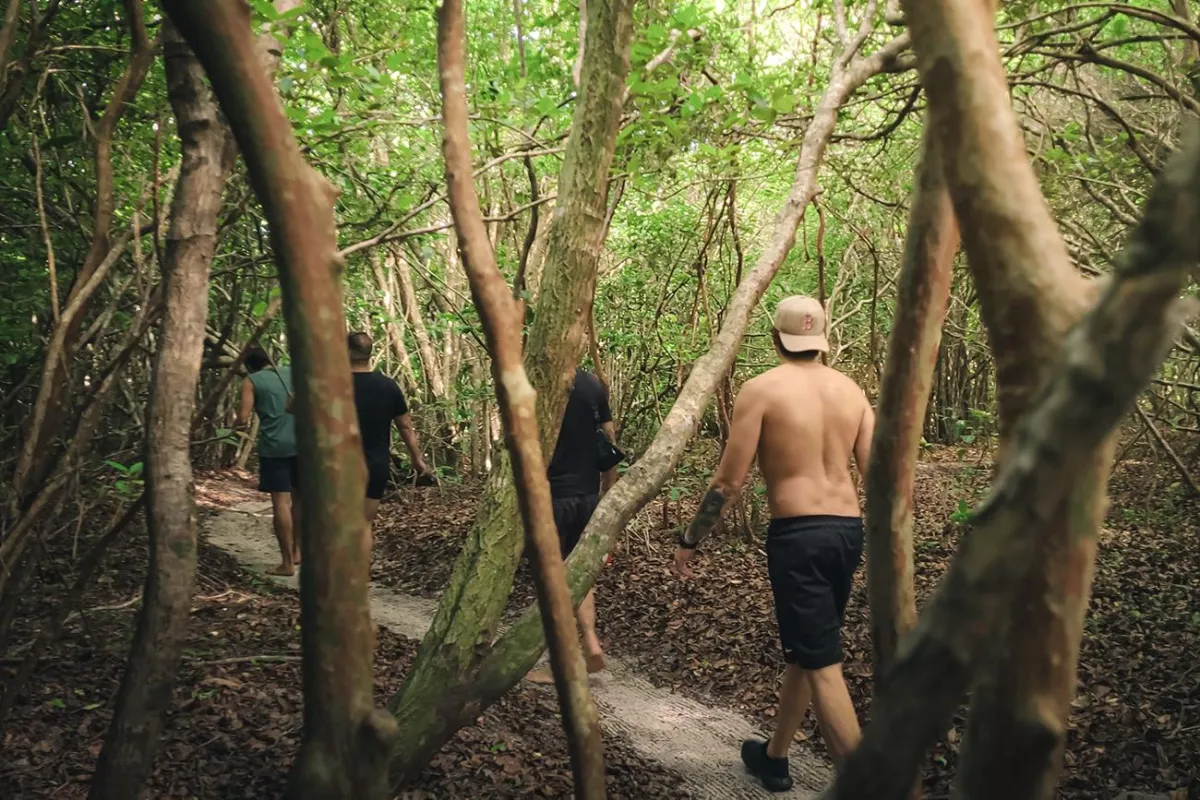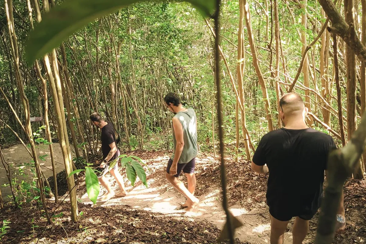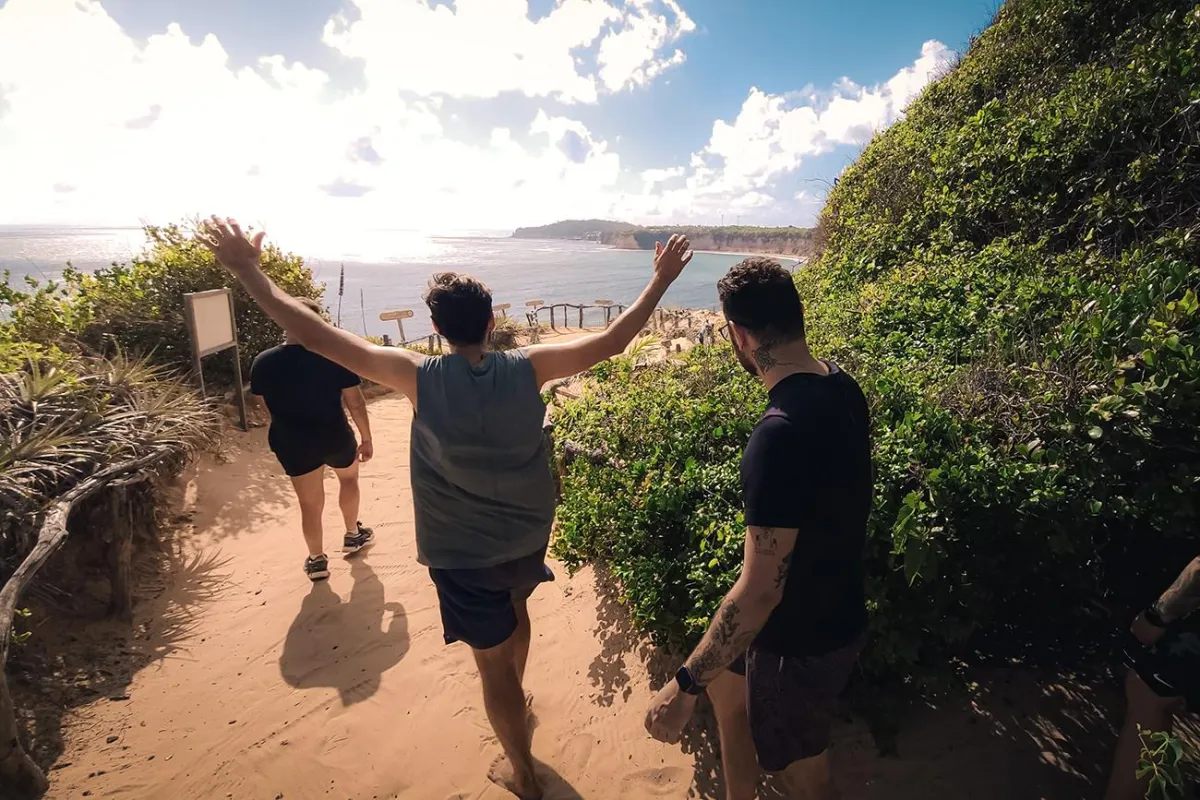 Surf guiado, canoa havaiana, trilhas pelas falésias e banhos de floresta fazem parte da jornada.