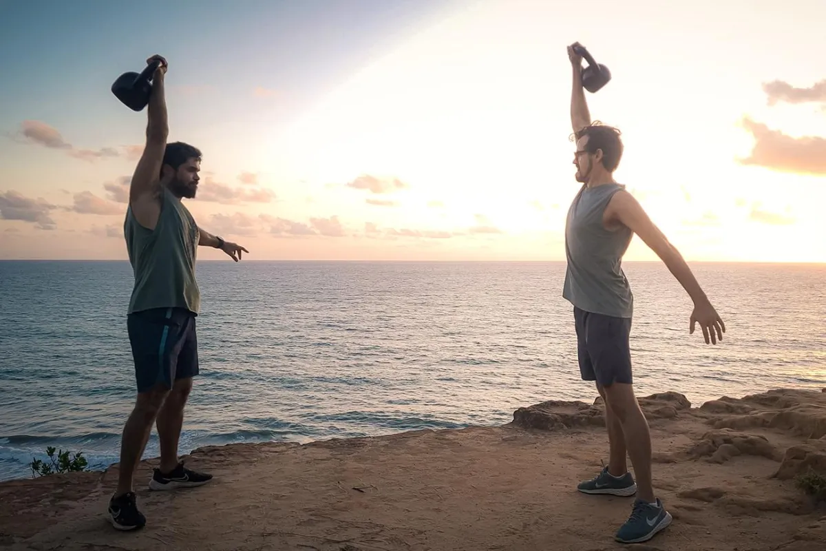 As práticas incluem kettlebell, calistenia, boxe, Muay Thai e defesa pessoal — focadas em força, mobilidade e foco mental.